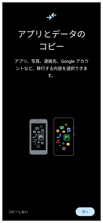 - Google アカウントを設定しているほかの端末からデータをコピーする場合は、をタップして、画面の指示に従って操作してください。
