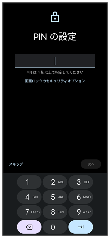 画面の指示に従って、画面ロック/指紋によるロック解除を設定