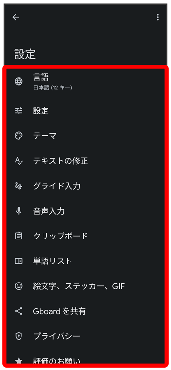 | 評価のお願い | Gboard に満足しているかどうかのアンケートに答えることができます。 |