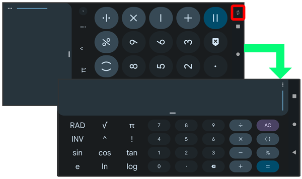 をタップすると表示画面が横表示に切り替わります。縦表示に切り替える場合は、本機を縦向きに回転させて