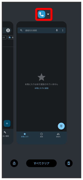 マルチウインドウ画面下に表示されたアプリの履歴一覧から、次に操作したいアプリをタップ