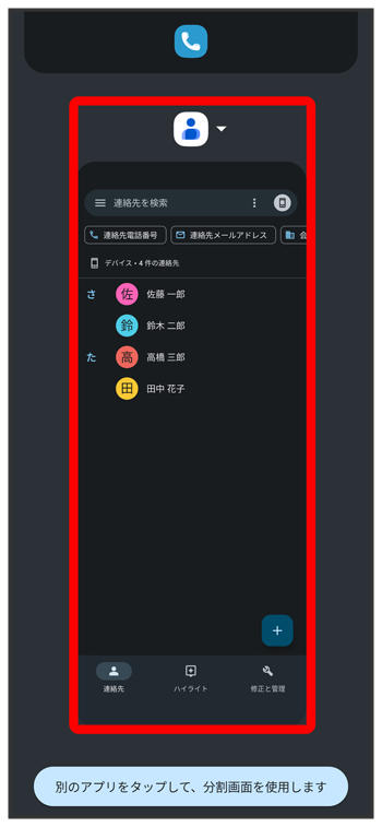 マルチウインドウ画面下にタップしたアプリが表示されます。