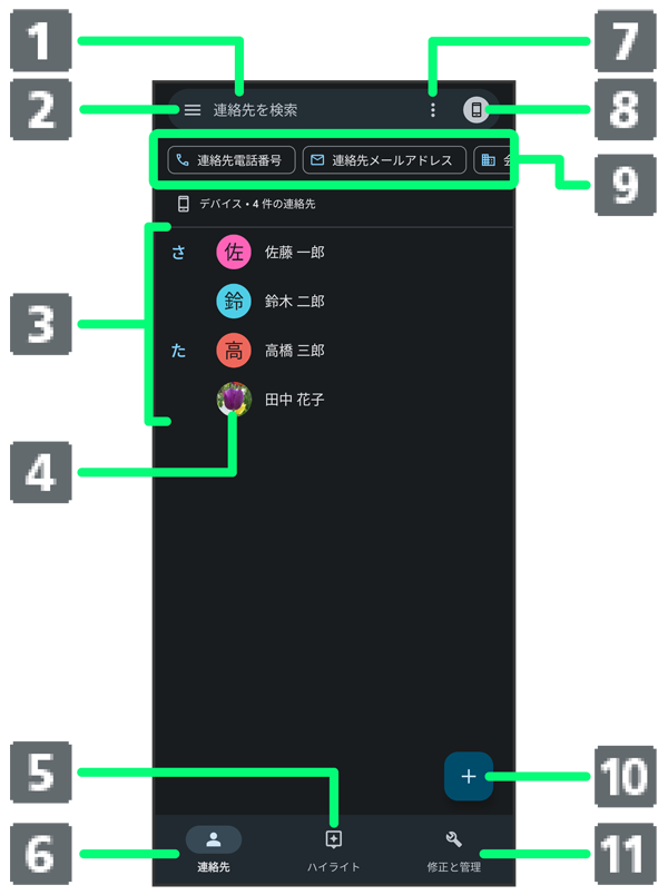 - 電話番号やメールアドレスなどで連絡先をフィルタリングできます。