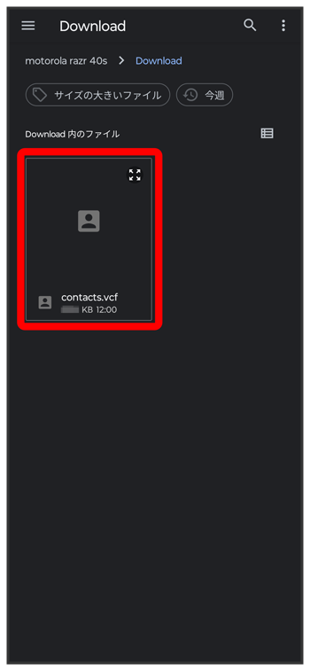 内部ストレージに保存(バックアップ)した連絡帳データを読み込み(インポート)できます。