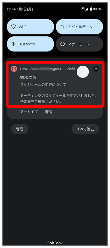 - 新着メールが2件以上あるときは、通知をタップするとメールの一覧が表示されます。確認する新着メールを選択してください。