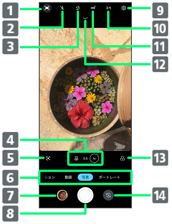 写真撮影画面の見かた
