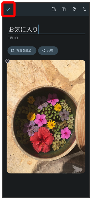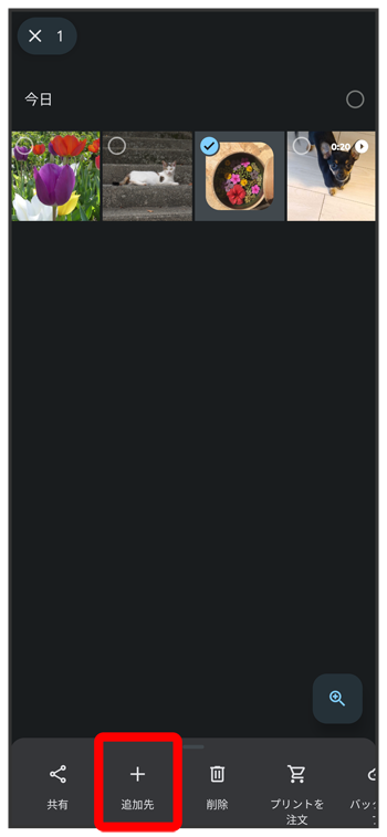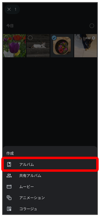 新規作成するアルバムの写真/動画をロングタッチ(
