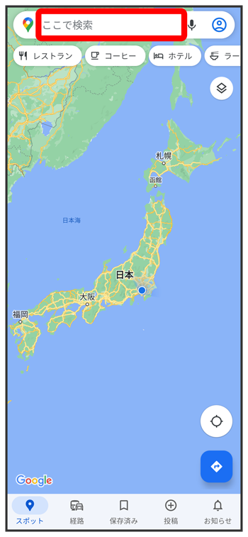 検索バーをタップ