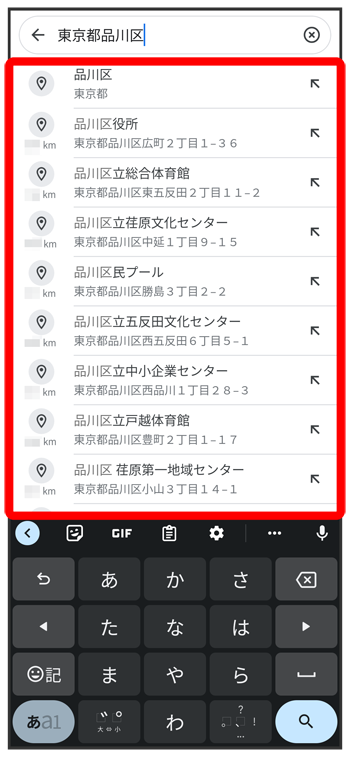 住所や都市、施設名などを入力選択候補から住所や都市、施設名などをタップ