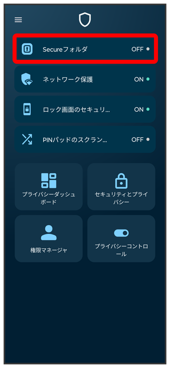 Secureフォルダが作成され、Secureフォルダ画面が表示されます。