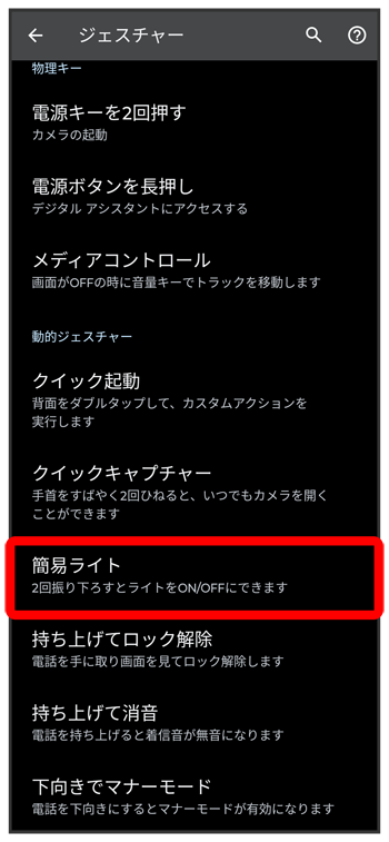 - をタップすると、簡易ライトのジェスチャー操作を試すことができます。