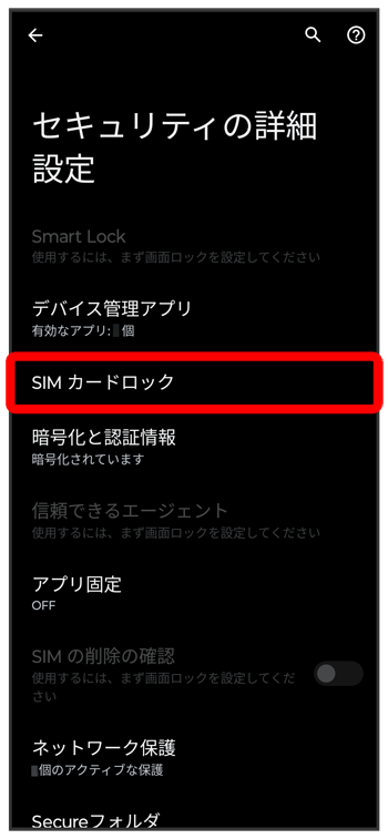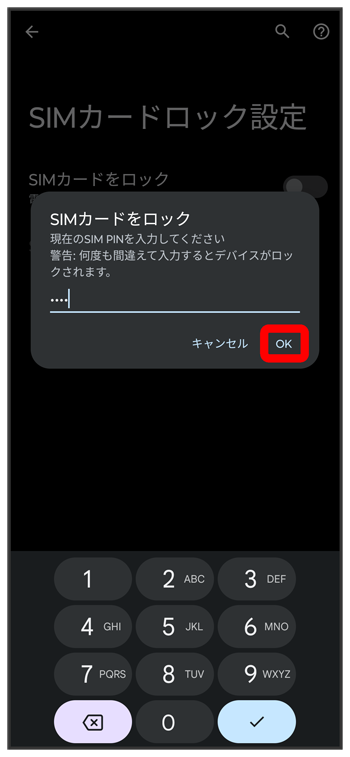 PINコードを有効にすることで、USIMカードを本機に取り付けた状態/eSIMが有効な状態で電源を入れたとき、PINコードを入力する画面を表示するように設定できます。