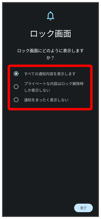 - 変更前の画面ロック解除方法がまたは以外のときは、設定が完了します。