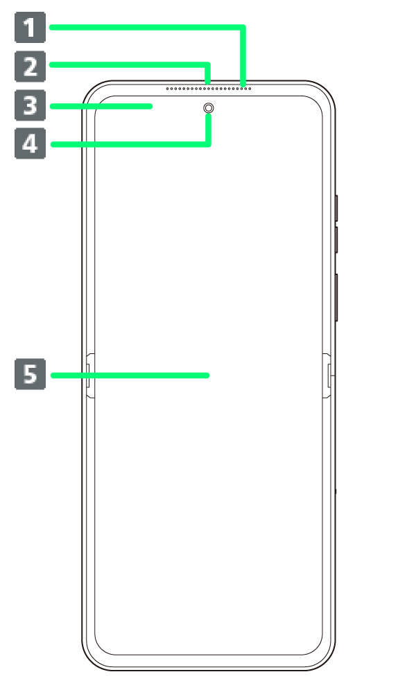| 受話口/スピーカー | 通話時は相手の声が聞こえます。メディア再生時は音楽や動画などの音声が聞こえます。 |