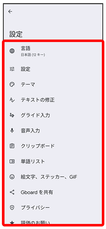 | 評価のお願い | Gboard に満足しているかどうかのアンケートに答えることができます。 |