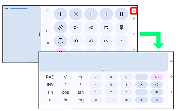 をタップすると表示画面が横表示に切り替わります。縦表示に切り替える場合は、本機を縦向きに回転させて