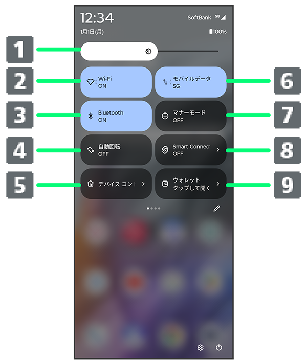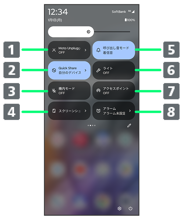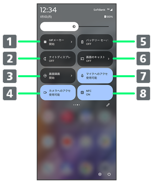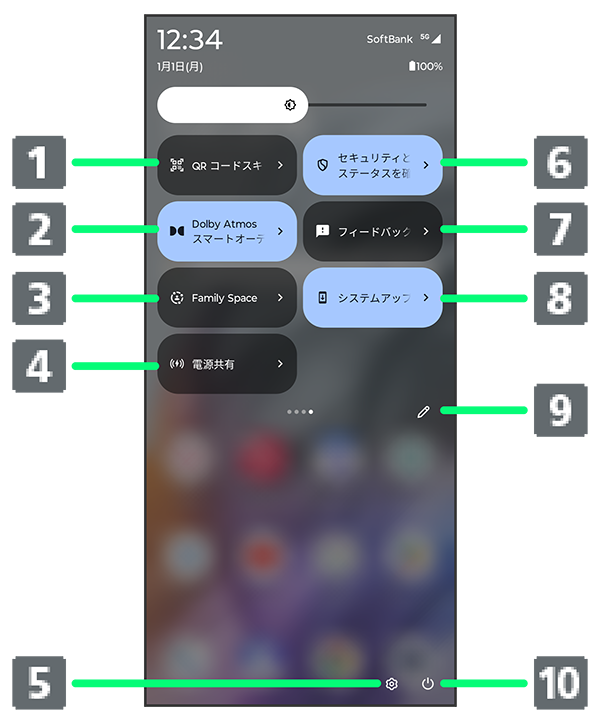 クイック設定パネルの見かた