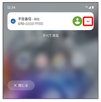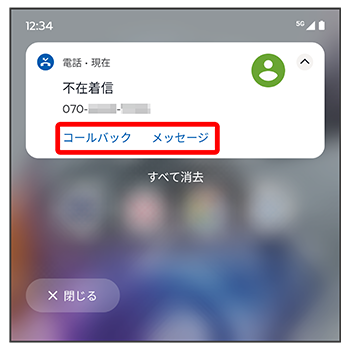 ここでは、不在着信ありの通知を操作する方法を例に説明します。
