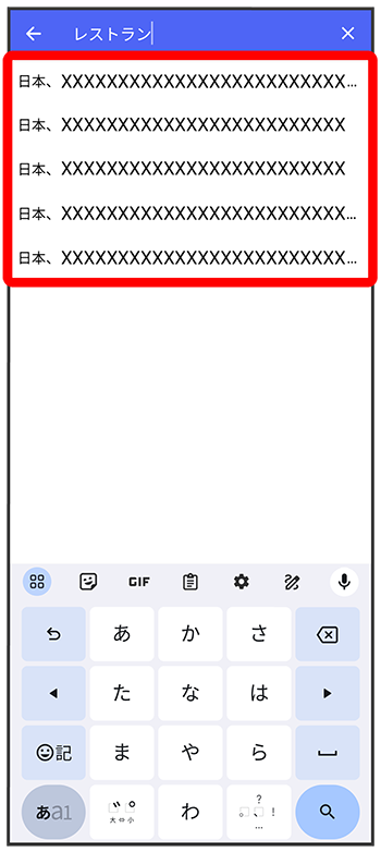 位置情報のキーワードを入力送りたい位置情報をタップ