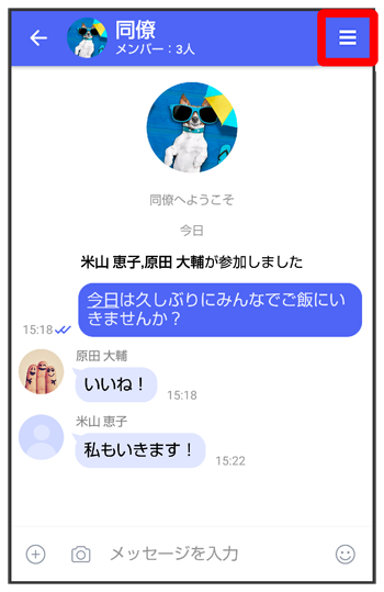 同じグループのメンバーに写真やスタンプなどが共有できます。