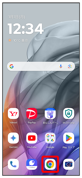 をタップして対象のタブをタップします。アイコン内の数字は、開いているタブの件数によって変わります。