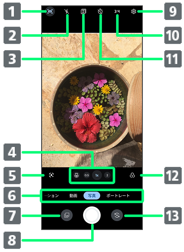 カメラに映るものの情報を検索できます。 - 撮影モード切り替え