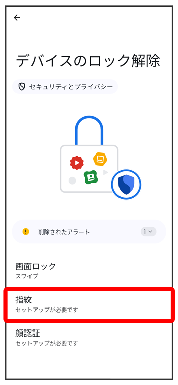 - 設定した画面ロック解除方法は、指紋認証を利用できない場合に使用します。