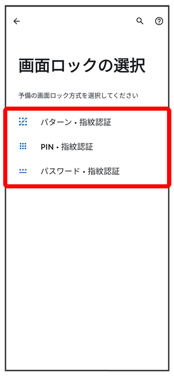 画面の指示に従って、画面ロック解除方法を設定