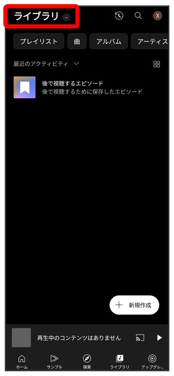 - をタップすると、プレイリストが一覧で表示されます。リストをタップしてから、曲名をタップすると曲が再生されます。