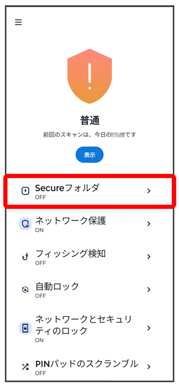 Secureフォルダ画面でSecureフォルダを非表示にする