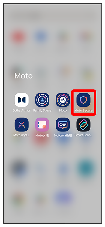 Secureフォルダ画面で- を選択すると、Moto Secureアプリ内のアイコンが非表示になり、を選択すると、アプリ一覧画面および共有シート内のアイコンが非表示になります。