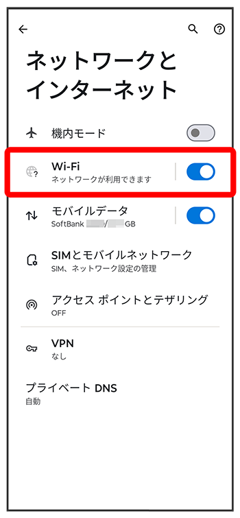 Wi-Fi設定画面で、「接続済み」と表示されているWi-Fiネットワークをタップ