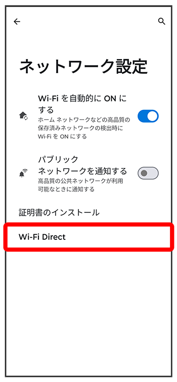 接続する機器をタップ相手機器で接続を承認Wi-Fi Directで接続されます。