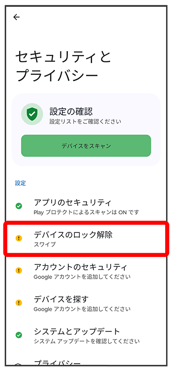 - 変更前の画面ロック解除方法がまたは以外のときは、ロックを解除する操作が必要です。