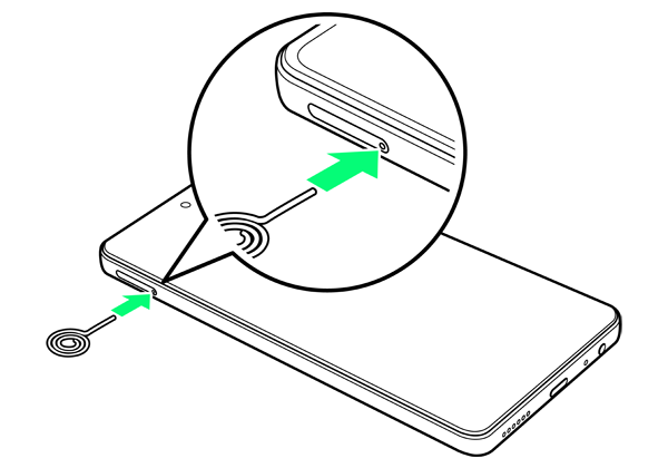 SIM取り出しツールをトレイ取り出しホールに水平に差し込む