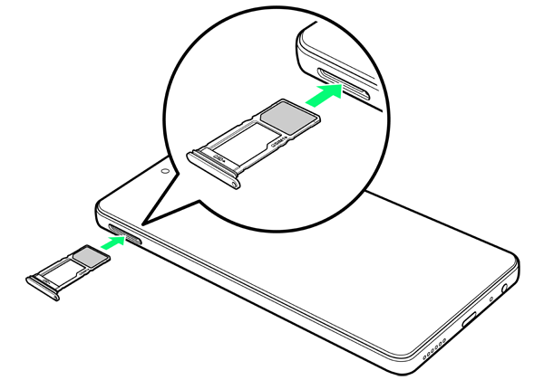 USIMカード/SDカードトレイを本機に差し込み、奥までまっすぐに押し込む