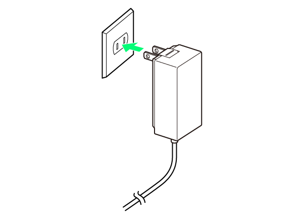 ACアダプタの電源プラグを起こし、コンセントに差し込む