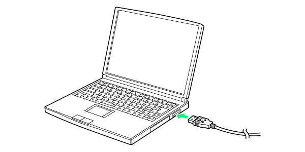 パソコンのUSB端子に、PC接続用USB Type-CケーブルのUSBプラグを差し込む