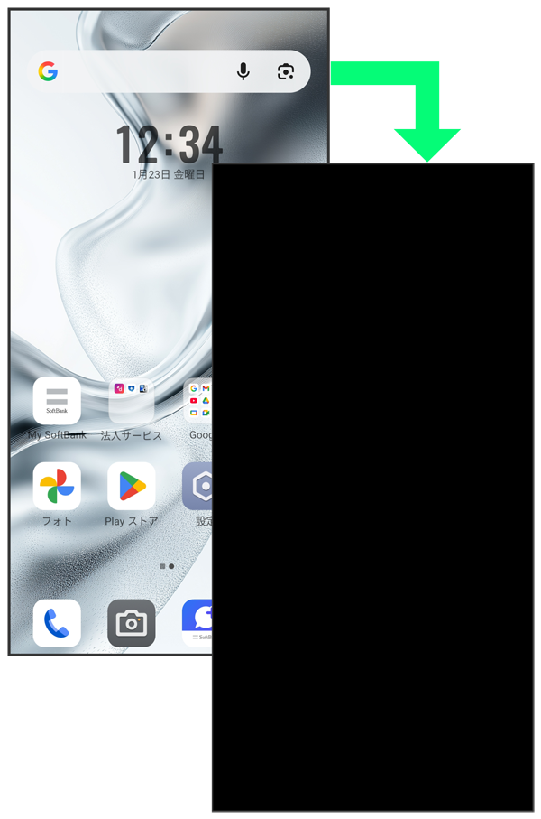 - 画面点灯時に電源キーを押すと、手動で画面ロック状態にすることができます。