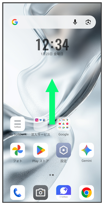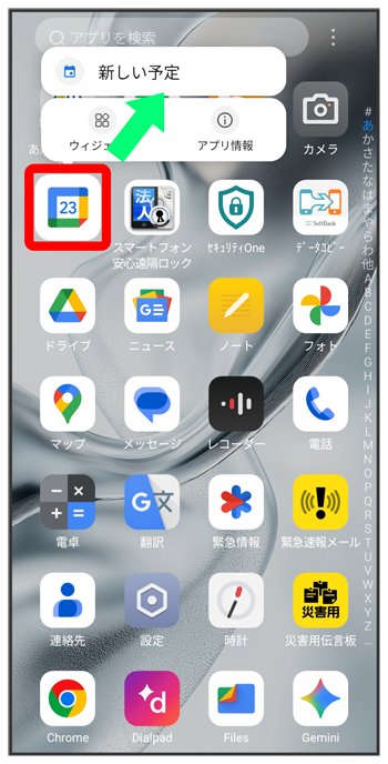 ショートカットを作成するアプリをロングタッチ任意の方向に少しドラッグ