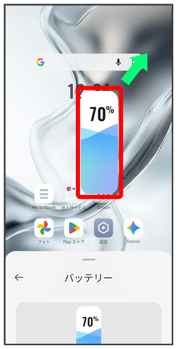 追加したいウィジェットのカテゴリをタップ追加したいウィジェットをロングタッチ