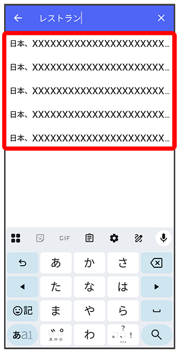 位置情報のキーワードを入力送りたい位置情報をタップ