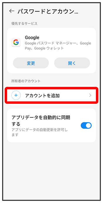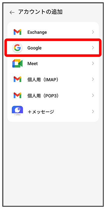 ここではGoogleのメールアカウント追加を例に説明しています。
