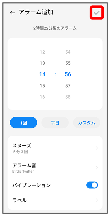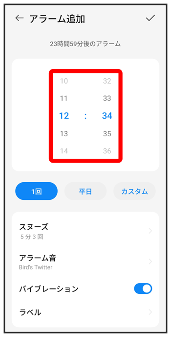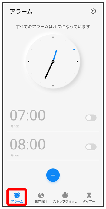 アラーム設定時刻になると、アラーム音や振動でお知らせします。