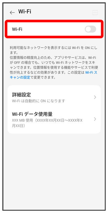 Wi-Fi設定画面が表示されます。
