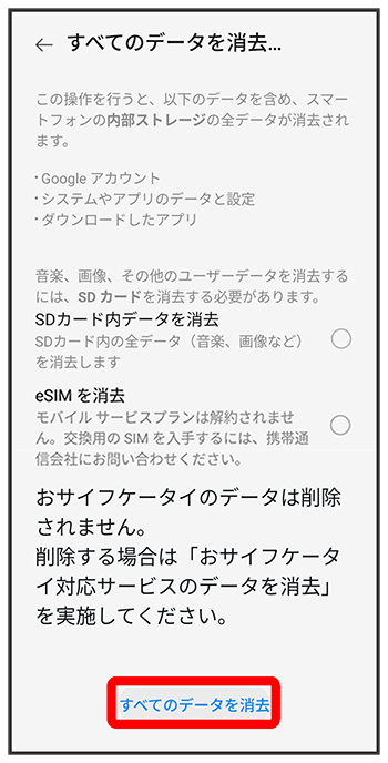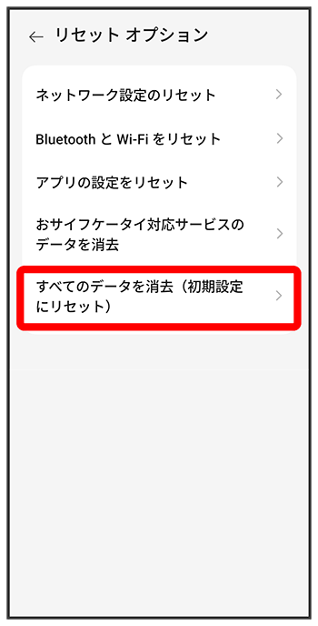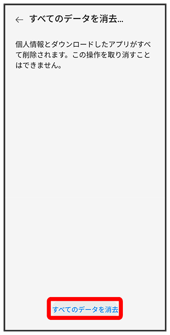 - 本機にSDカードを取り付けているとき、SDカードのデータも消去する場合は、をタップしてください(