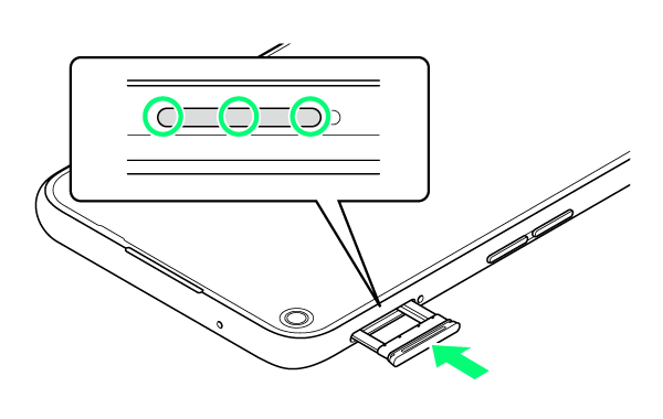 SIMカード/SDカードトレイの挿入口に、SIMカード/SDカードトレイをまっすぐに差し込む