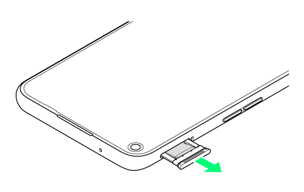 SIMカード/SDカードトレイの挿入口に、SIMカード/SDカードトレイをまっすぐに差し込む