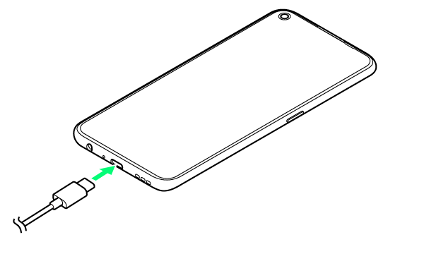 本機のUSB Type-C接続端子に、ACアダプタのUSB Type-Cプラグを差し込む