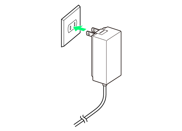 ACアダプタの電源プラグを起こし、コンセントに差し込む